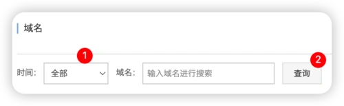 时间范围选择「全部」,然后再点击「查询」按钮,就可以看到名下所有域名。
